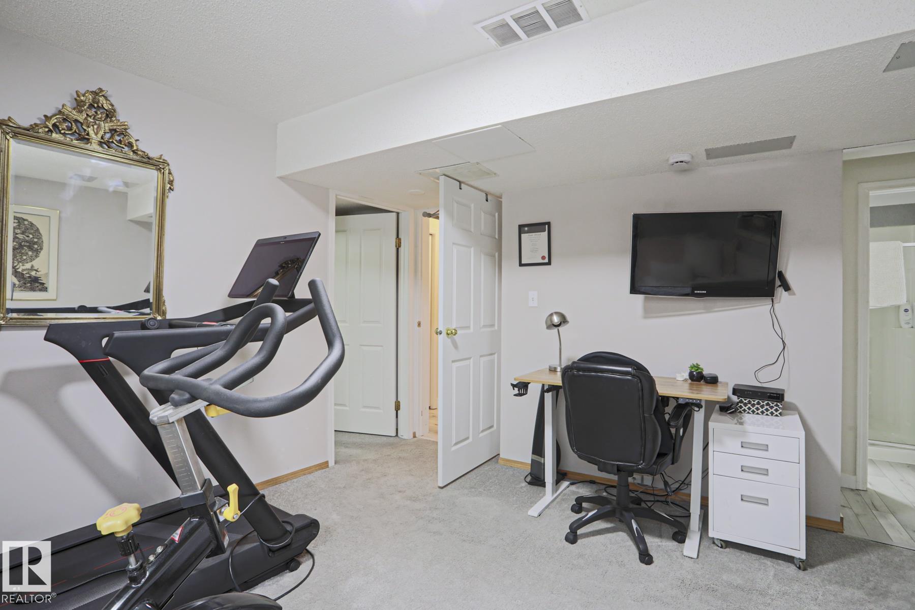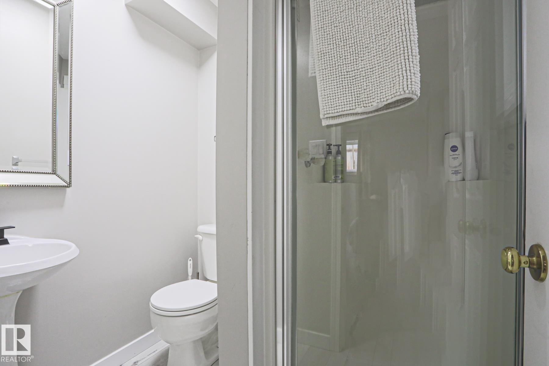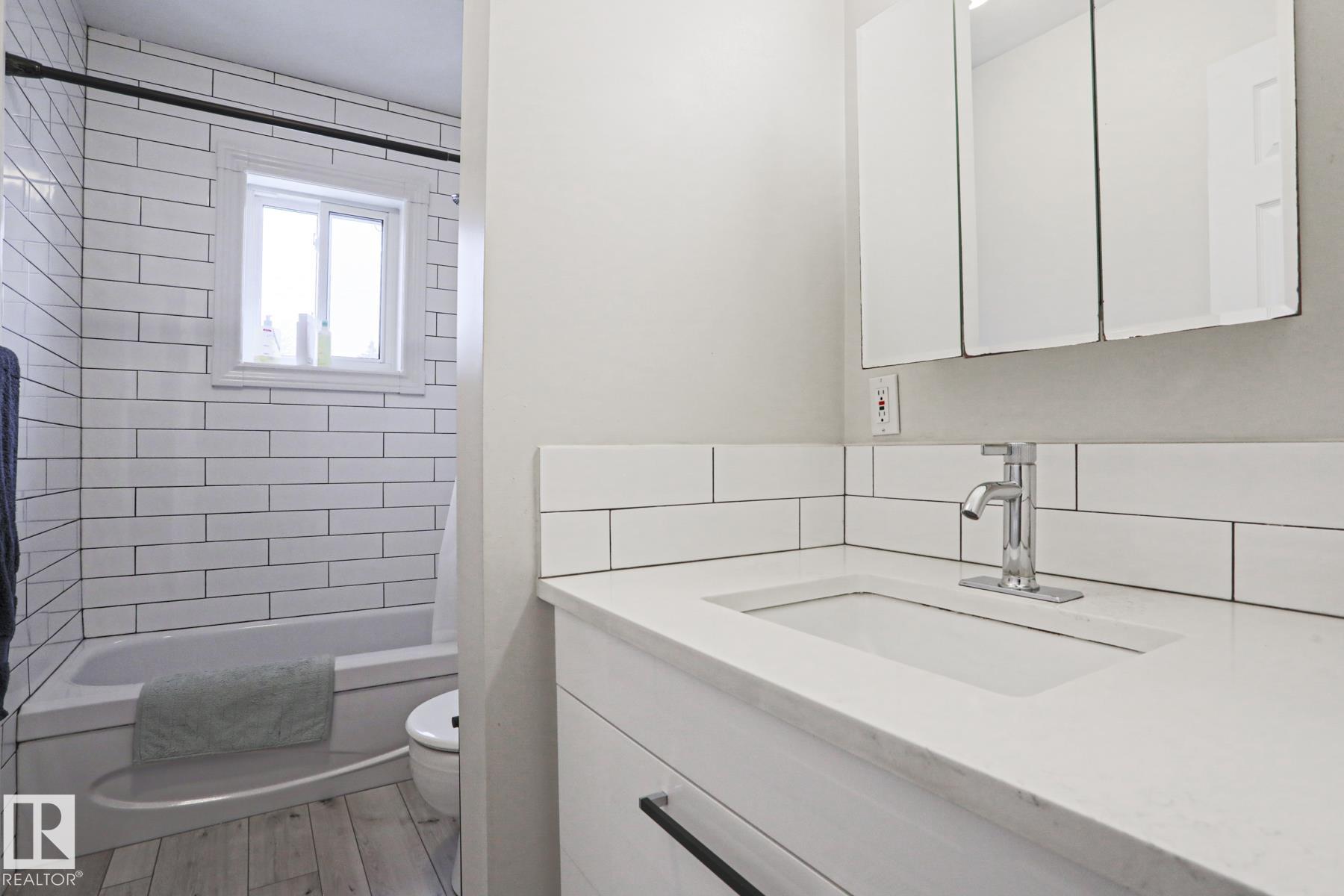 Welcome to this beautifully updated half duplex condo with NO CONDO FEES, located in desirable Bonnie Doon - just steps to Mill Creek Ravine and minutes to downtown and Whyte Ave! The main floor offers a bright, spacious living room, dining area, 2-pc bath, and a stylish galley kitchen, fully renovated in 2018 with modern cabinetry, quartz countertops, marble tile backsplash, and stainless steel appliances! Upstairs features 2 generous bedrooms and a 4-pc bathroom. The fully finished basement adds a third bedroom, 3-pc bath, and a large family room. Upgraded luxury vinyl plank on the main, bathrooms & foyer. Additional upgrades include new TRIPLE PANE WINDOWS (2024) and garage shingles (2022), and garage heater (2022). This home also features AIR CONDITIONING and hot water on demand! Enjoy the private, treed backyard with patio space, single detached garage with lane access, and ample additional parking. Close to schools, parks, transit, and just a short walk to Edmonton Folk Music Festival!
