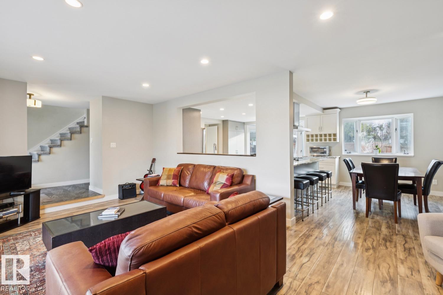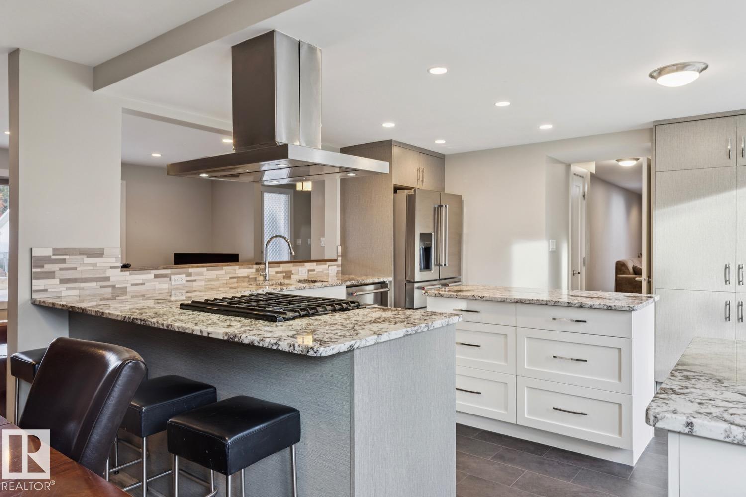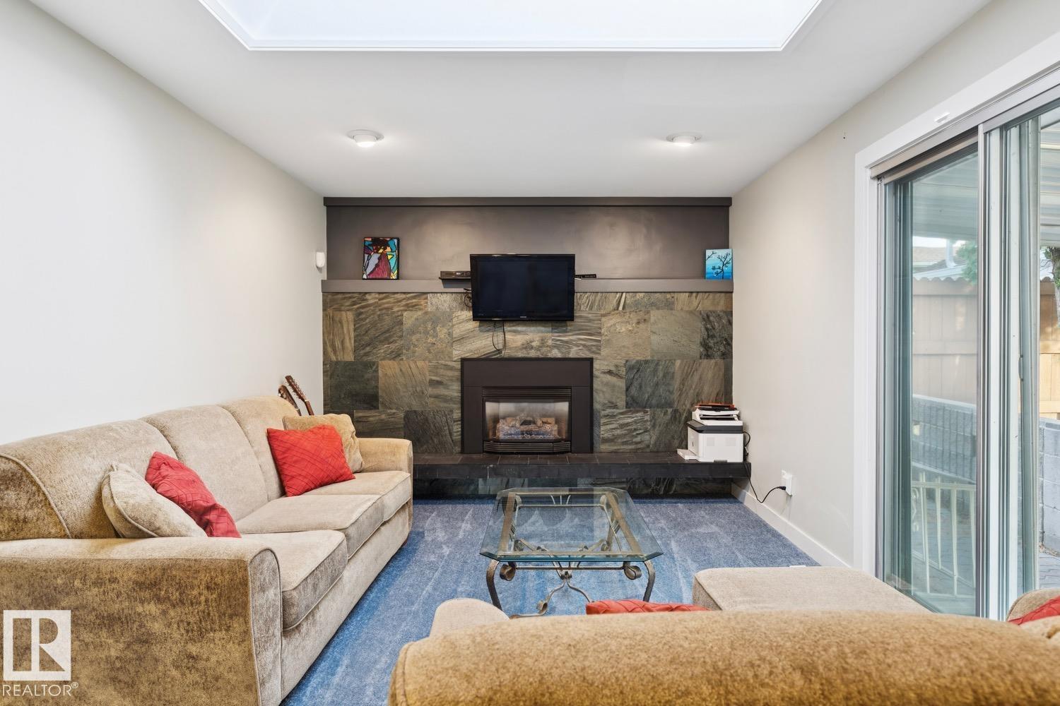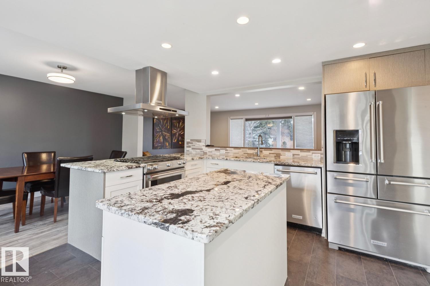 Stunning family home in prestigious Brookside! This beautiful 2-storey sits upon a grand 7600+ sqft lot, offers over 2750 sqft of living space, and has been tastefully updated! The main floor features a bright/open layout, gleaming laminate/tile flooring, formal living/dining areas, warm family area w/stunning fireplace. Updated kitchen w/granite counters and s.s. appliances. Upstairs you will find the spacious primary suite w/3-pc ensuite, 3 additional bedrooms, and additional 4-pc bath. The FULLY FINISHED lower level offers a large rec area, 2 additional bedrooms/den, 3-pc bath, and laundry/storage space. Outside you will enjoy the private and mature yard w/large covered deck. Recent improvements include: kitchen, flooring, basement development, roof, furnaces, HWT, A/C units, and more. Steps from walking paths/Whitemud Creek Ravine, schools, parks, and other amenities. Welcome to your new home!
