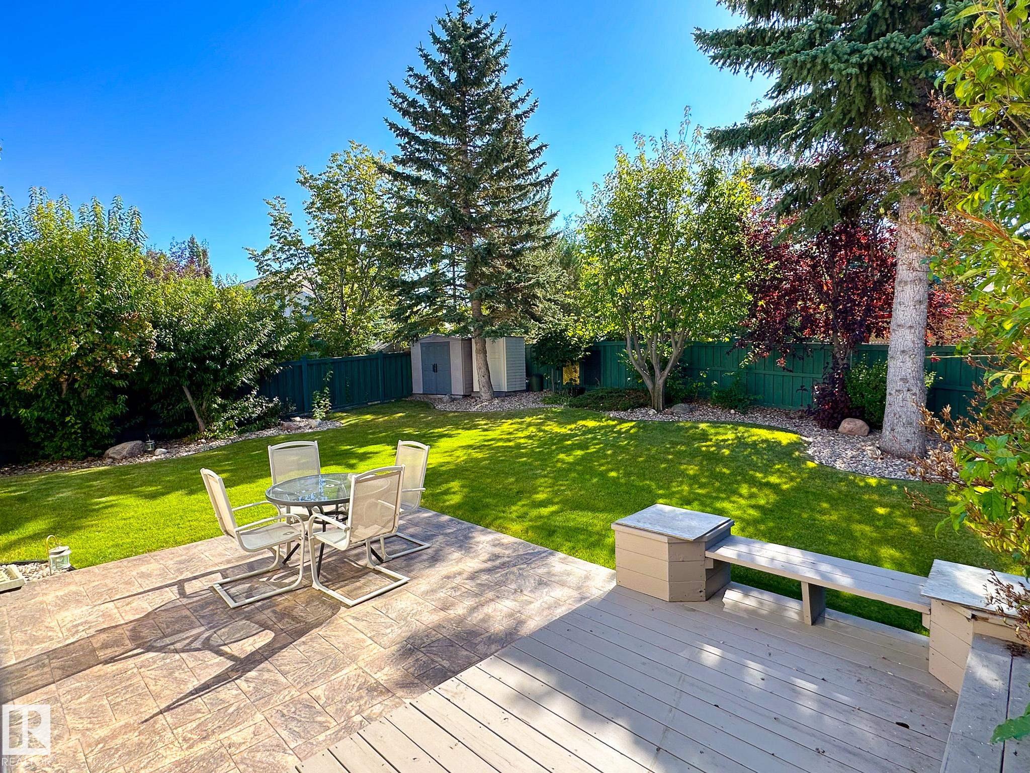 The location & pride of ownership of this home are unmatched! Starting with the location, this home is located at the back of a quiet local traffic only crescent. With a huge private south facing yard beautifully landscaped w/ mature trees & shrubs throughout. A 2 tier deck & a stamped concrete patio this yard is an oasis. The home is a 2300sf landmark custom build with a fantastic floorpan. entering the home you are greeted with high ceilings & a den/office flex room. The bright open living room has a gas FP and the kitchen has updated quartz counter tops and upgraded appliances. main floor complete w/ 2pce bath & laundry. The upper level has a generous bonus room, 2 bedrooms, a 4 pce main bath & a wonderful primary bedroom w/ a 5pce ensuite incl. jacuzzi tub. The basement is fully finished in 2015 complete with a large rec room with wired in surround sound and a wet bar with a dishwasher. The 4th bedroom is massive & has a walk in closet. There is also a beautiful 3pce full bath. This home is an 11/10.
