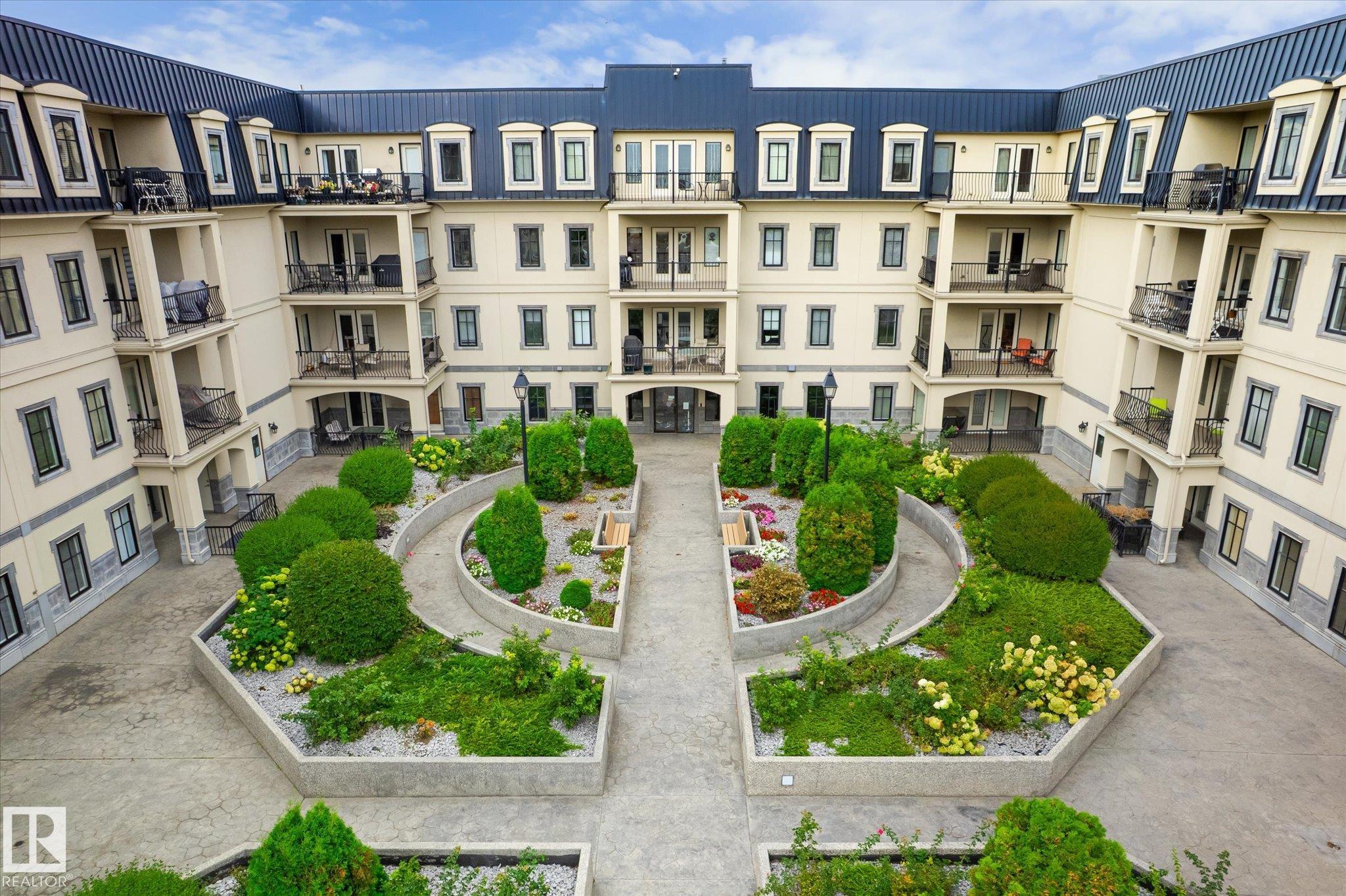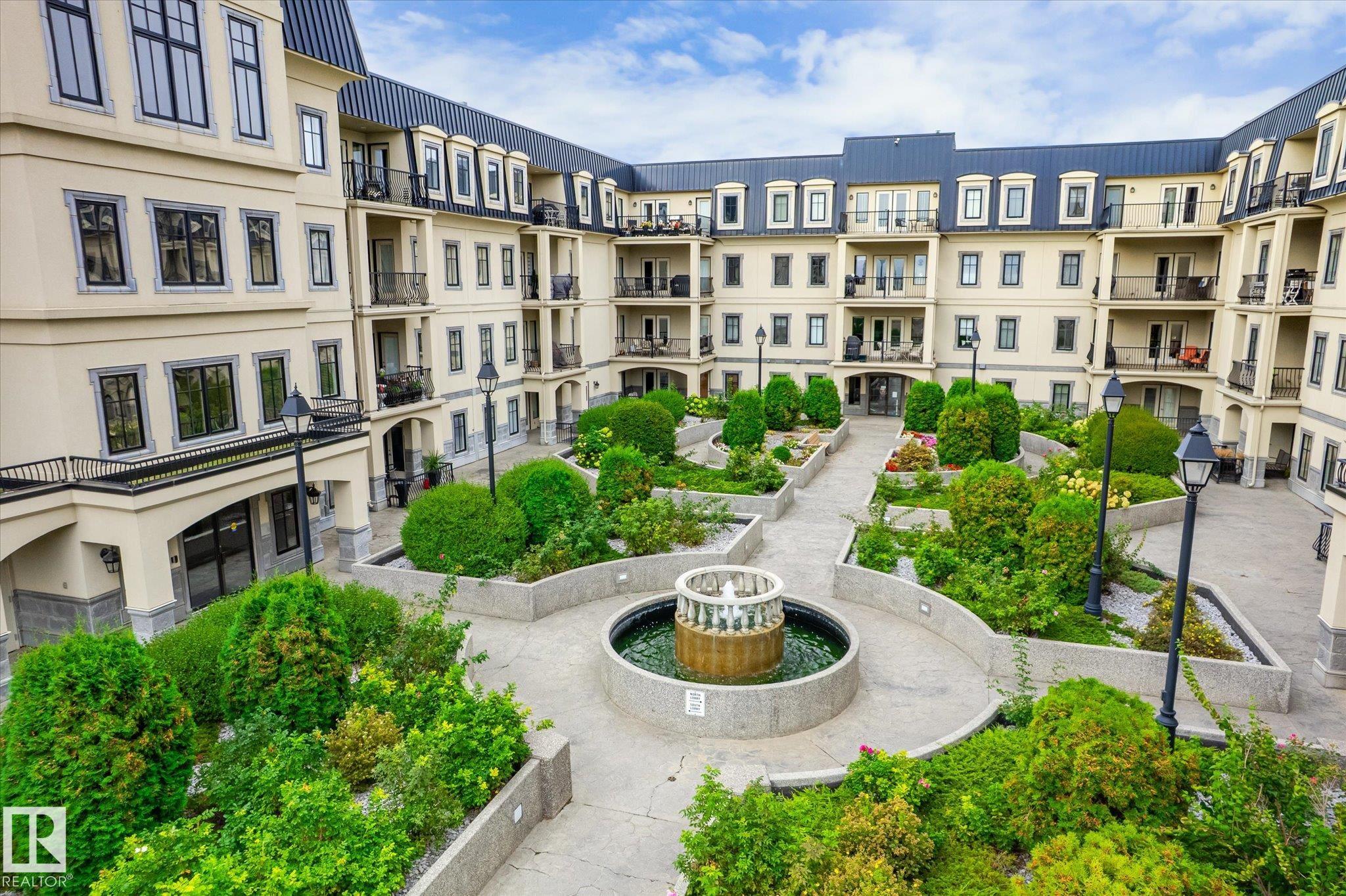 Welcome to Chateaux at Whitemud Ridge located in Edmonton's presteigous SW community of Hodgson. This 2 bedroom, 2 bathroom condo comes with 9' ceiling, 1 titled underground parking stall and a storage cage. This building has an European flare and the courtyard is nestled in the heart of the grounds and a fountain can be enjoyed. The large balcony can be accessed from both the master bedroom or living room doors, and is complete with a gas hook-up. Offering in-suite laundry, quality appliances, granite countertops, and high-end cabinets. The living room is large and open to the deck, dinette and kitchen. This quiet adult building has an age restriction of 21 years old and up, and is wonderfully equipped with amenities including gym, swirl pool, steam room, sauna, party room with barbecue area, media room, and theatre. Walking distance to ravine trails, and easy driving access to the Anthony Henday, Whitemud Drive, and the airport. Enjoy the luxury and comfort of maintenance-free living.
