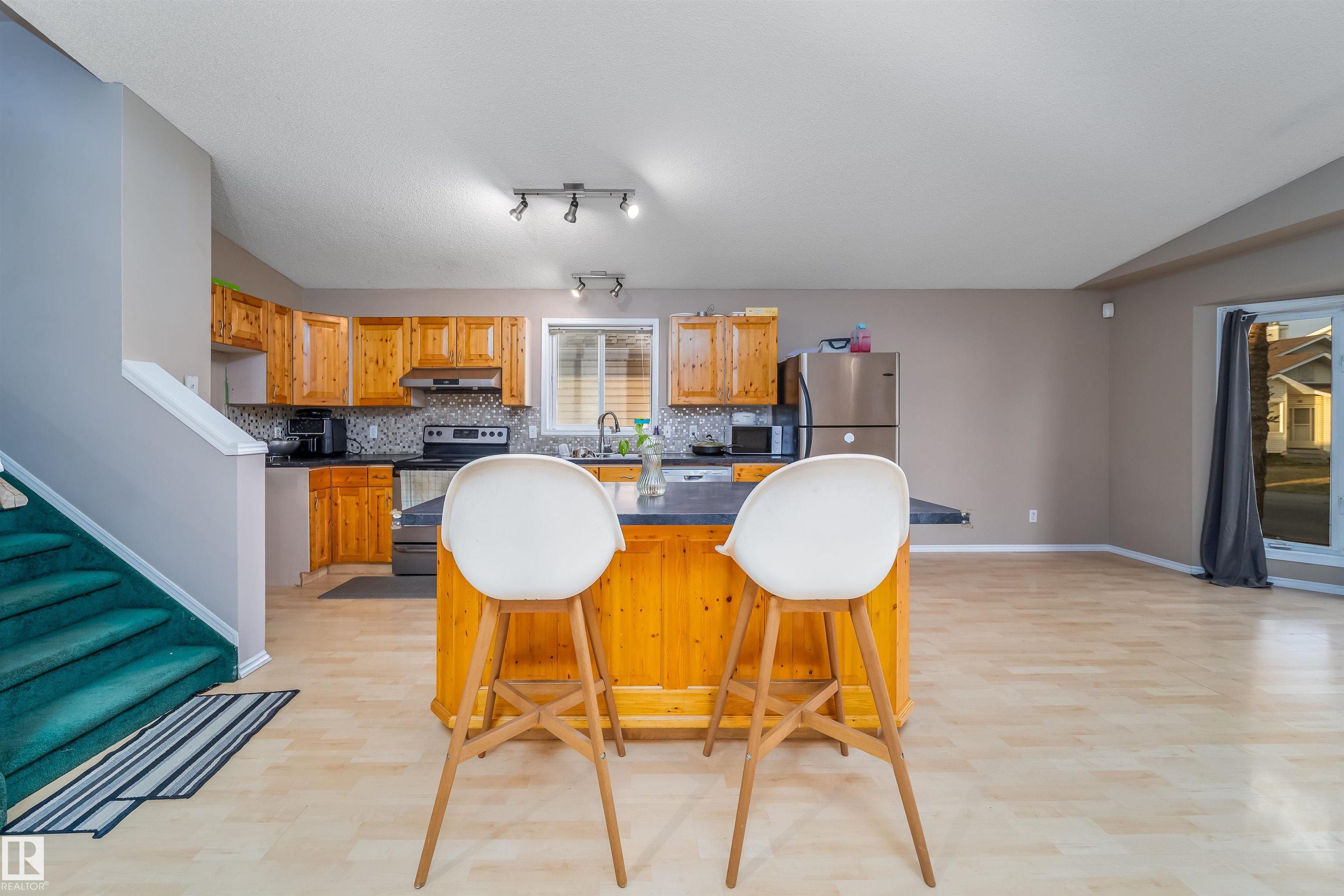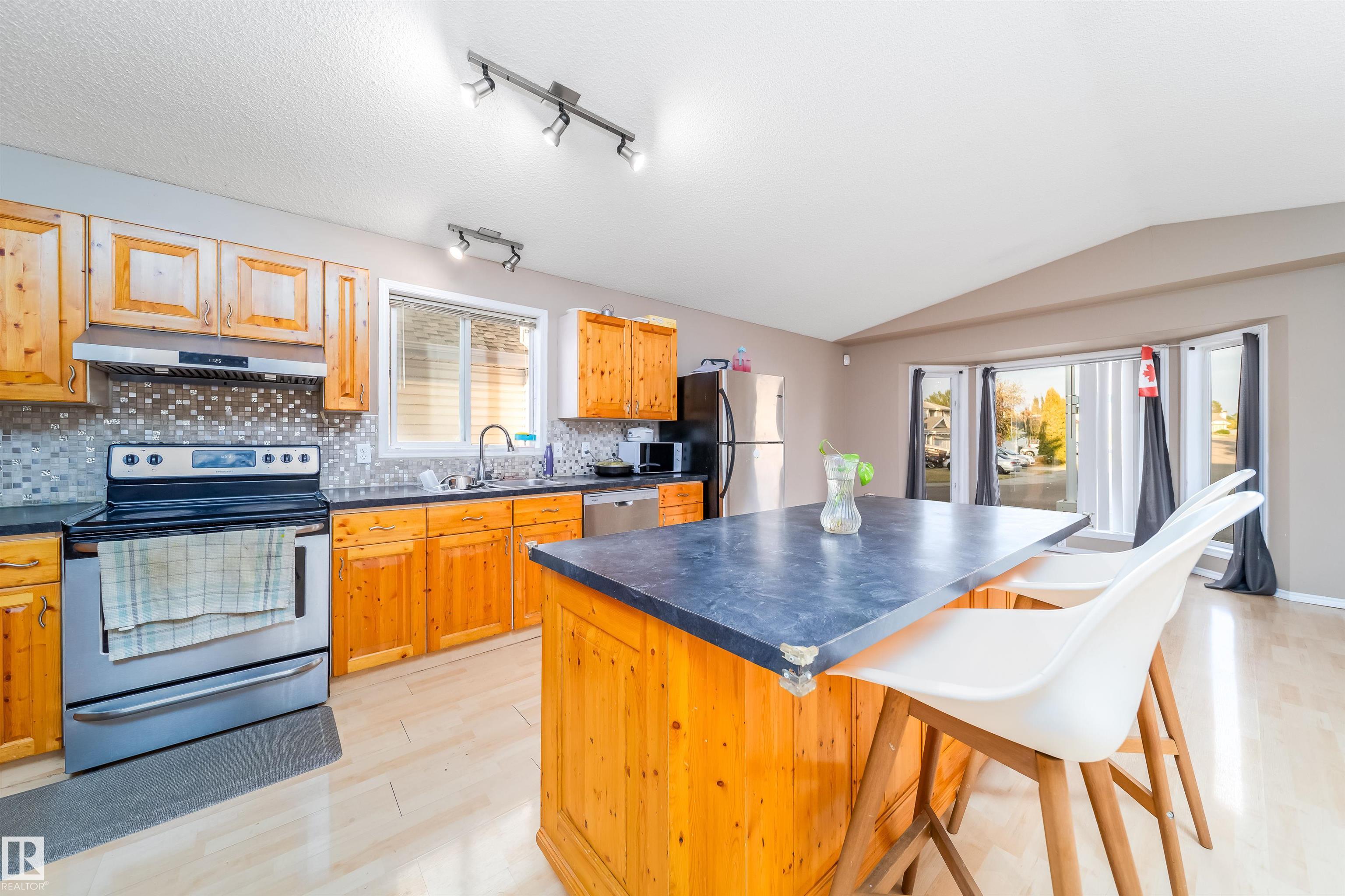 Stunning 4-level split with a **fully finished basement**, 2.5 baths and ~$25,000 in tasteful renovations. Bright, open main floor showcases a huge **bay window** and **vaulted ceiling** over a large kitchen with central island, stainless steel appliances, abundant maple cabinets, beautiful backsplash and durable laminate flooring. Recent mechanicals: roof 2 years, hot water tank, furnace 1 year. Lower level offers a **new full bathroom with standing shower**, an oversized bedroom and a **massive family/media room with a cozy gas fireplace**. Outside features a **new fence and extended side deck** -- perfect for entertaining. Walking distance to schools, shopping and parks, with quick access to Whitemud Drive and Anthony Henday. A turnkey family home you'll love!