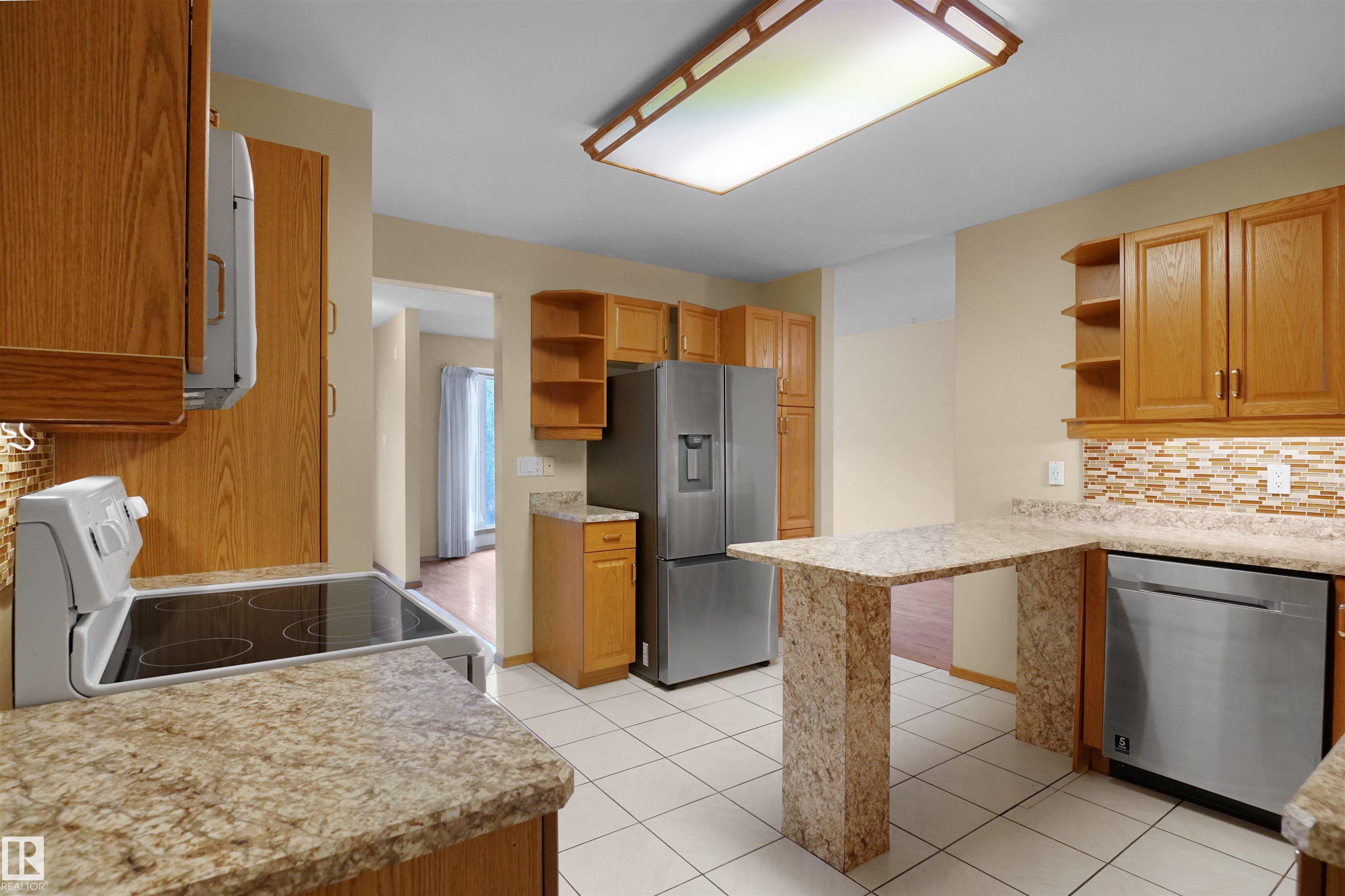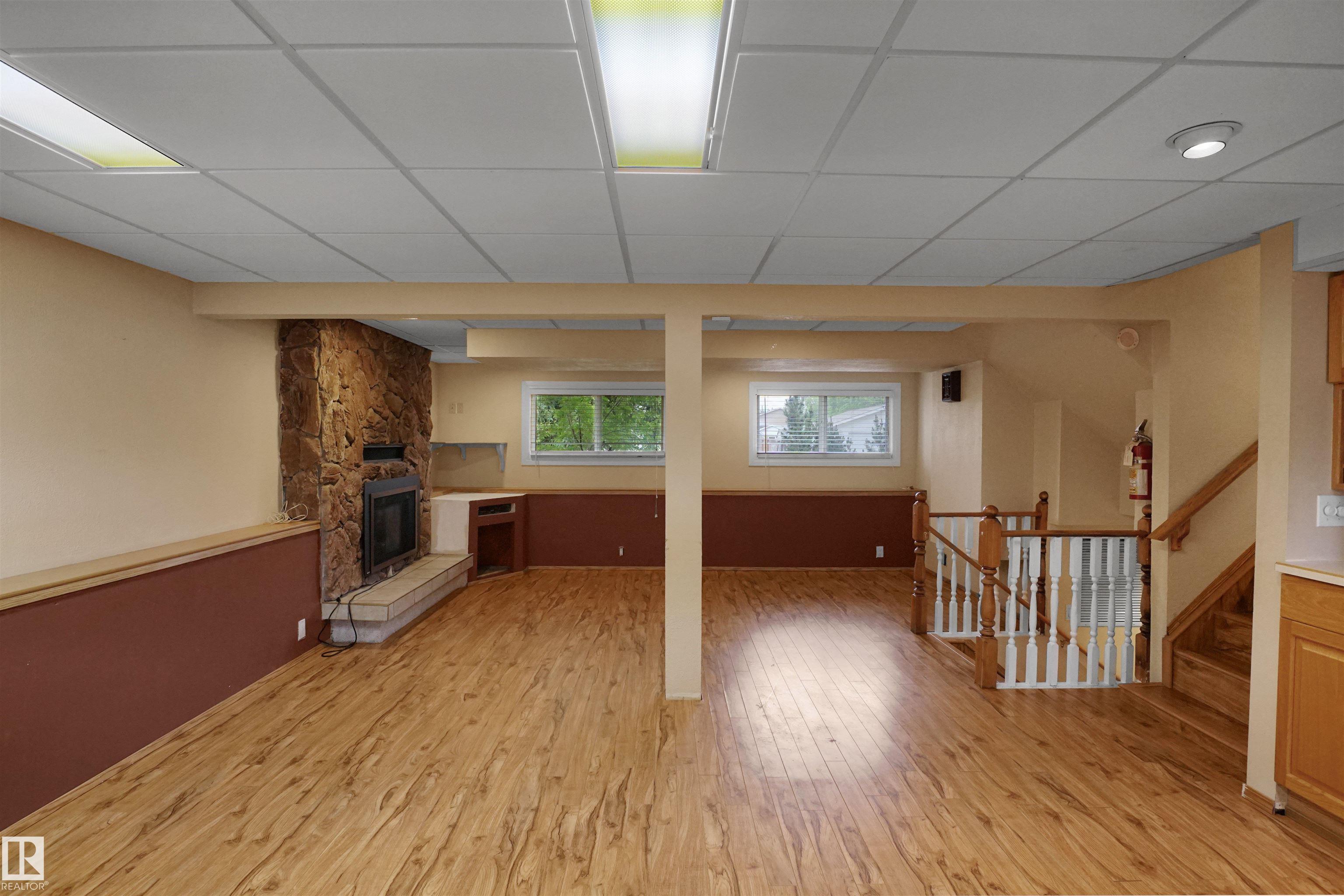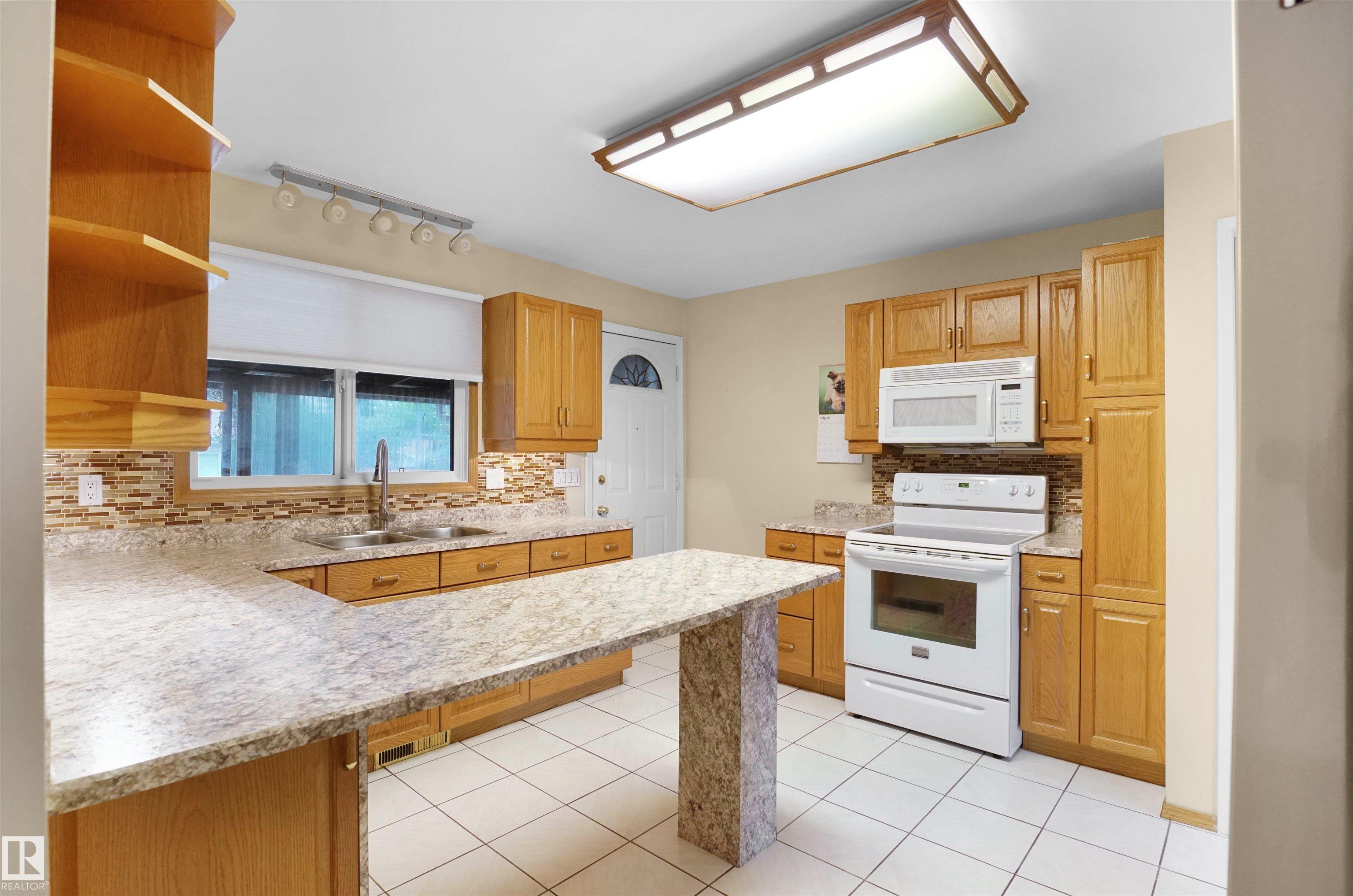 Welcome to this spacious 4-level split home in the desirable community of Michaels Park, featuring 5 bedrooms, 2.5 bathrooms, and a fully finished basement. The main floor offers a bright living room with big front-facing windows, a dining area with patio doors that open to a covered deck and a functional kitchen with ample cabinetry, tile backsplash, and a cozy breakfast nook. Upstairs, the primary bedroom includes a private 2-piece ensuite, complemented by two additional bedrooms and a 4-piece main bathroom. The lower level boasts a large family room with a gas fireplace--perfect for relaxing or hosting guests. The basement includes two more bedrooms, a 3-piece bathroom and a crawling storage space. Covered deck offers a cozy retreat year-round, and the spacious backyard with a double detached garage adds to the comfort. Conveniently located near LRT, bus stops, schools, parks, and shopping--this home is ready to welcome your family!