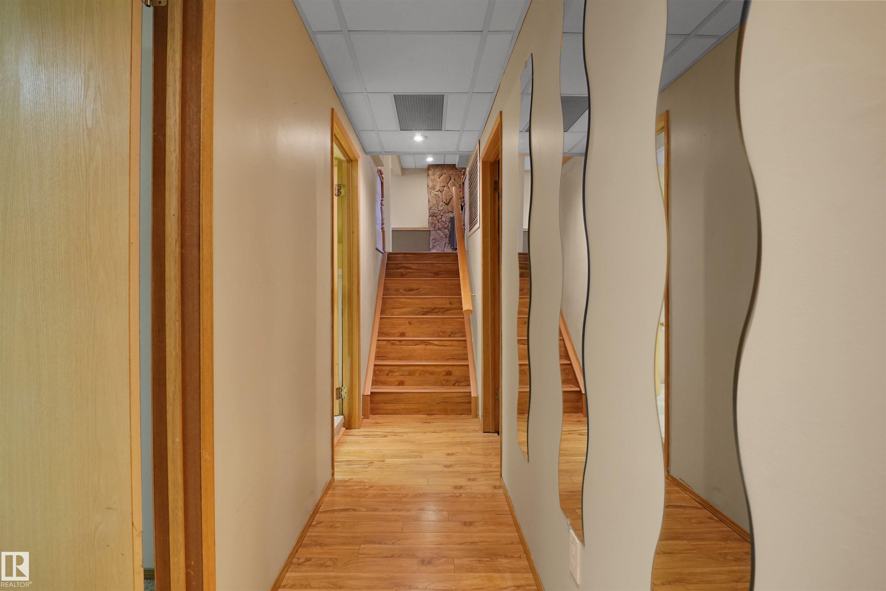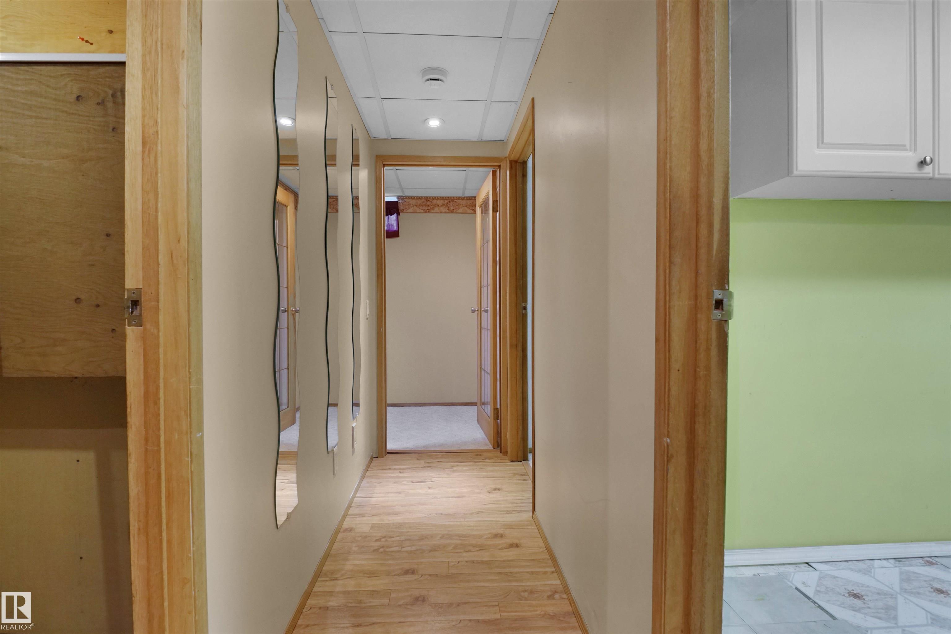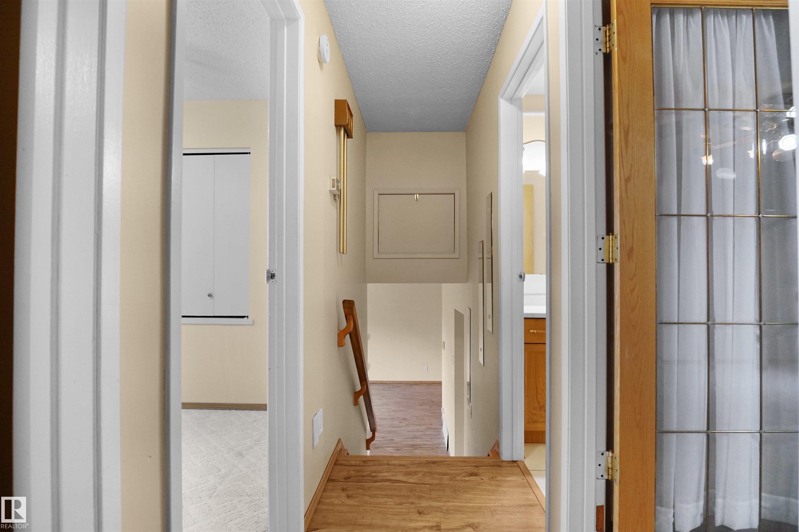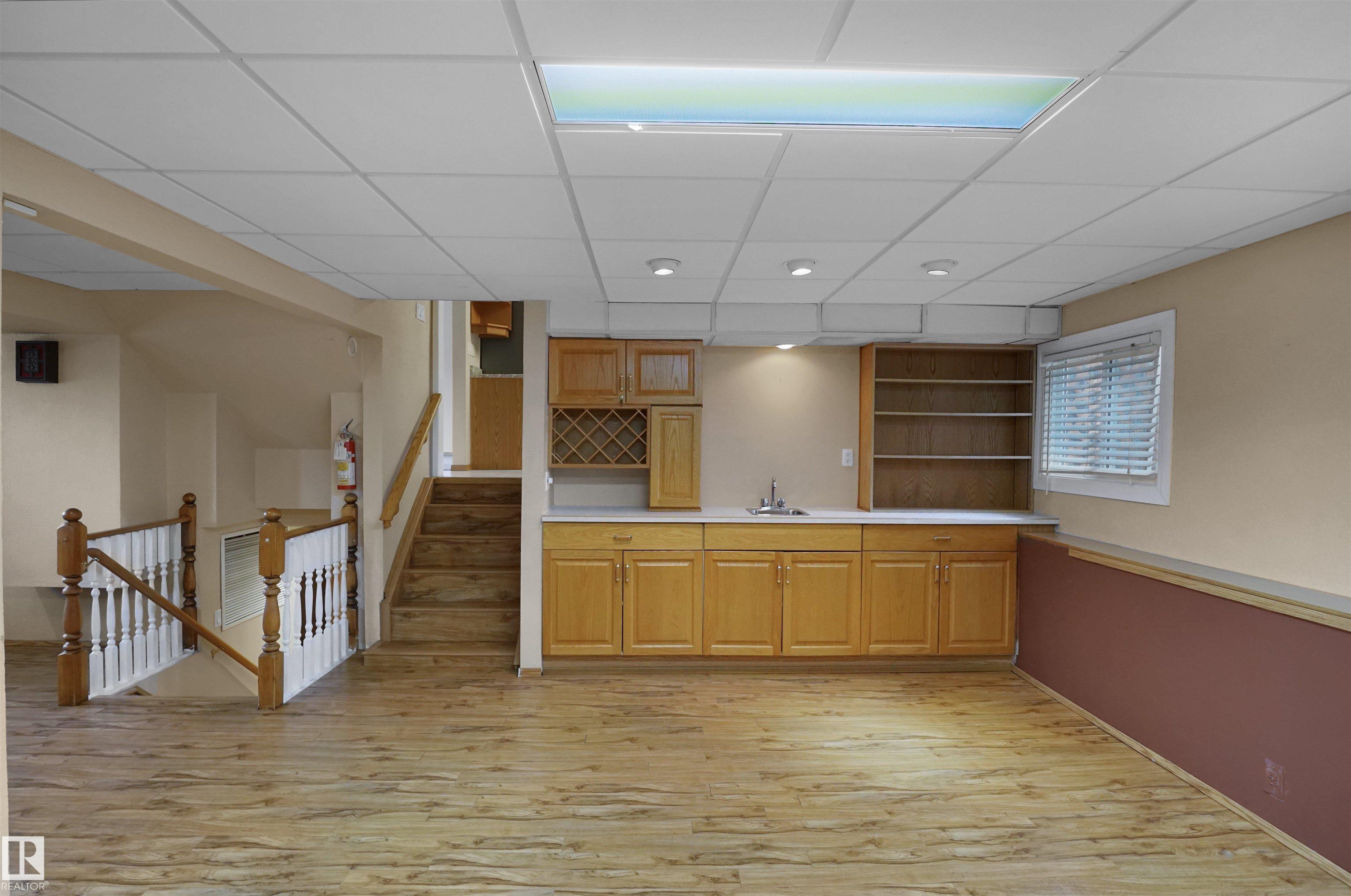 Welcome to this spacious 4-level split home in the desirable community of Michaels Park, featuring 5 bedrooms, 2.5 bathrooms, and a fully finished basement. The main floor offers a bright living room with big front-facing windows, a dining area with patio doors that open to a covered deck and a functional kitchen with ample cabinetry, tile backsplash, and a cozy breakfast nook. Upstairs, the primary bedroom includes a private 2-piece ensuite, complemented by two additional bedrooms and a 4-piece main bathroom. The lower level boasts a large family room with a gas fireplace--perfect for relaxing or hosting guests. The basement includes two more bedrooms, a 3-piece bathroom and a crawling storage space. Covered deck offers a cozy retreat year-round, and the spacious backyard with a double detached garage adds to the comfort. Conveniently located near LRT, bus stops, schools, parks, and shopping--this home is ready to welcome your family!