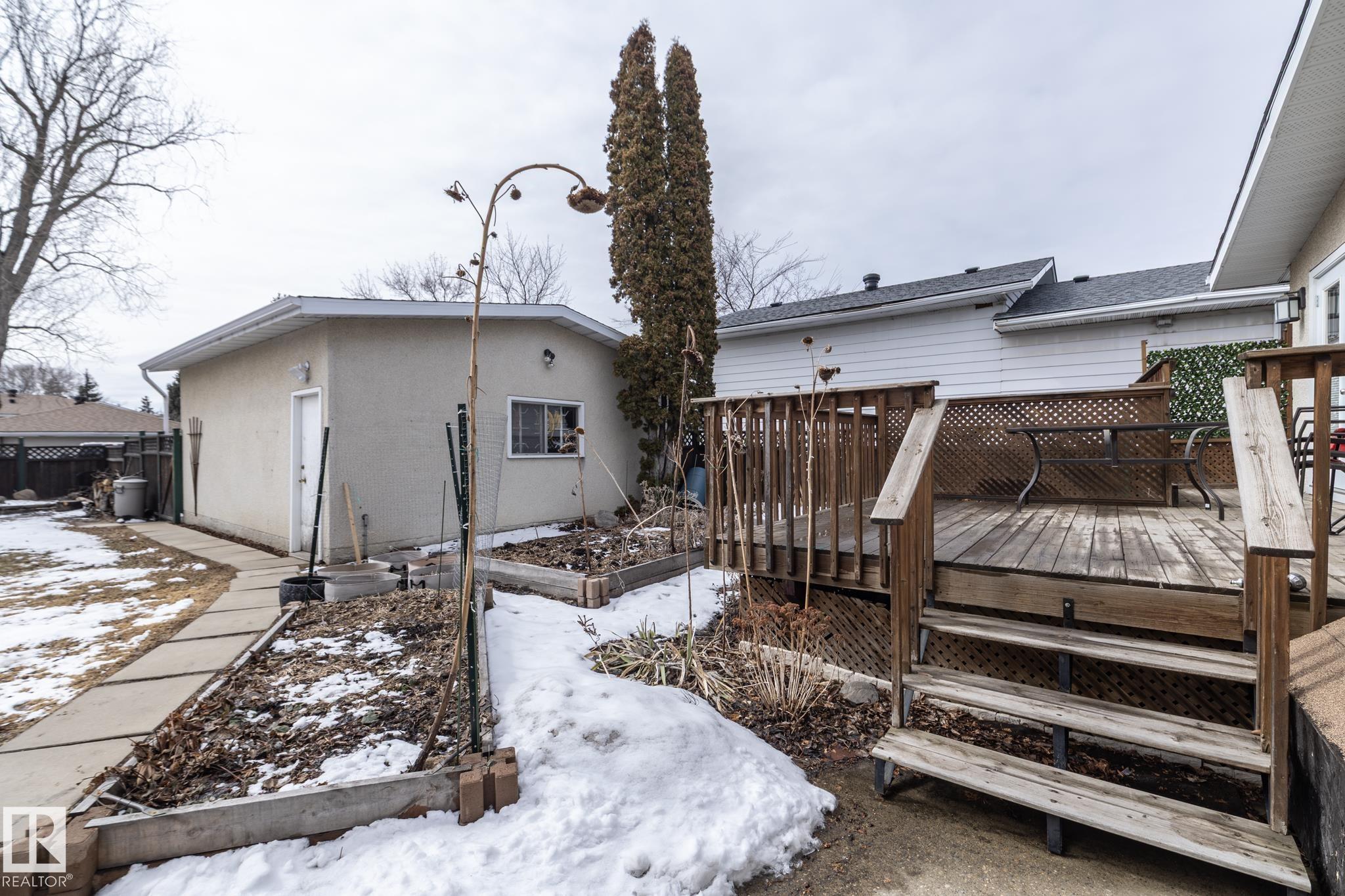 Welcome to this freshly painted & bright OPEN BEAM 2+2 bed, 2.5 bath bungalow with VAULTED CEILINGS in a cul-de-sac, located next to green space. As you enter you are greeted with gorgeous hardwood flooring and a large family room with vaulted ceilings, and an open concept which leads you into the gorgeous kitchen with large island & gas range. The spacious main bedroom has a huge walk-in closet with built-ins (which can be converted back into a 3rd bedroom if needed) and a bright & airy 2 piece ensuite. The 2nd bedroom, currently used as an office is also spacious. And last but not least is the renovated 4 piece bathroom that completes the main level. The basement has a huge rec room, 2 more bedrooms and a full bathroom. The large and private backyard has several garden beds which are regularly used to grow many fruits & vegetables. The oversized garage comes complete with an 8 foot overhead door. The unbeatable location in North Millwoods is a 5 minute walk to the LRT transit centre. Welcome home!