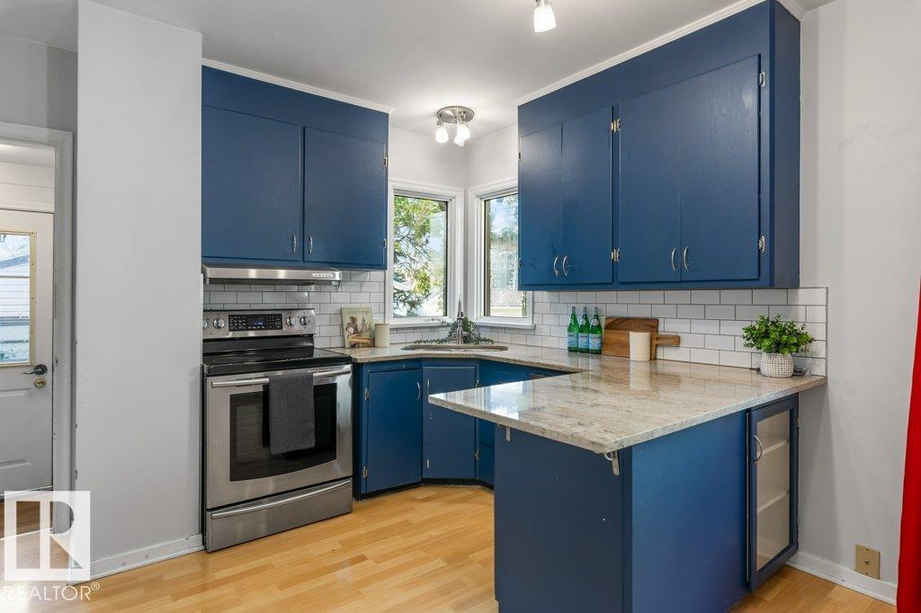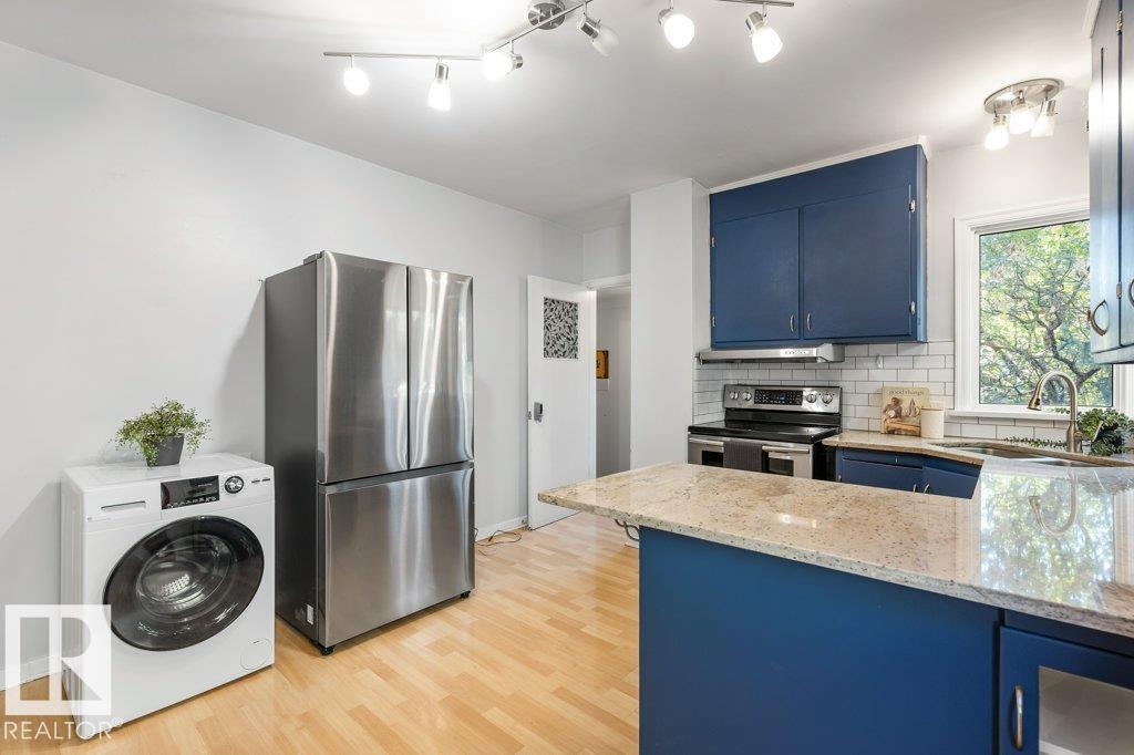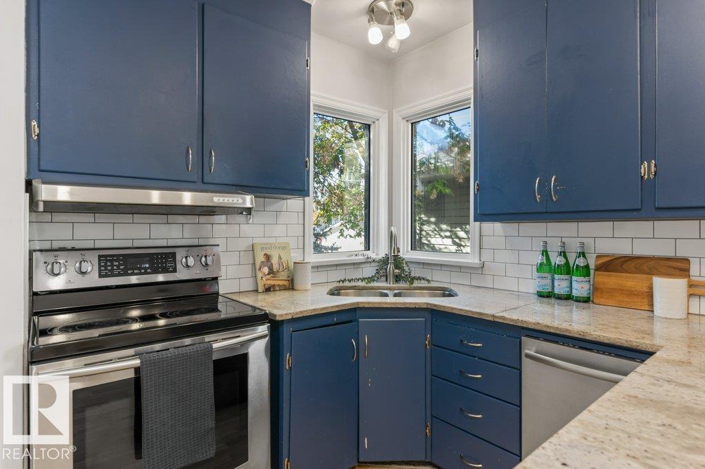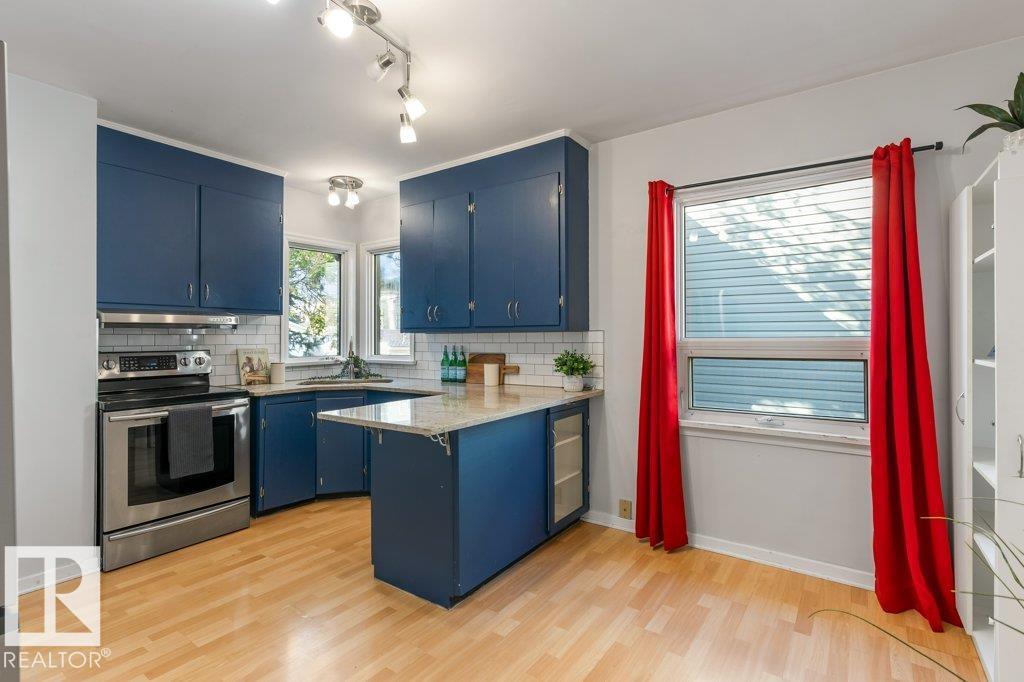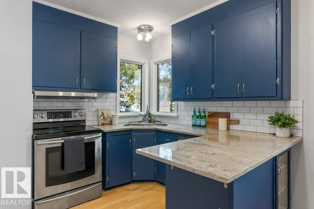 This well-maintained classic character home blends timeless charm with thoughtful updates and features a fully finished basement--ideal for extended family or guests. The main floor showcases original features such as hardwood floors, some glass door knobs and a decorative mantle. Inside, you'll find a spacious LR, two bdrms, updated 4-pc bath, and bright, functional kitchen with refurbished original cabinetry, granite countertops, SS appliances, and washer/dryer. Secondary basement suite offers one bdrm, modern kitchen, LR, 3-pc bath, separate laundry, and vinyl plank flooring throughout. Additional highlights include a single detached garage with newer garage door, fully fenced yard, high-efficiency furnace (2018), hot water tank (2019), updated windows, sliding barn door, and more. Located a few blocks from the U of A, quick access to City Centre, Whitemud, Whyte Avenue, river valley, parks, trails, shops, restaurants, and more--this home offers exceptional character and unbeatable convenience.