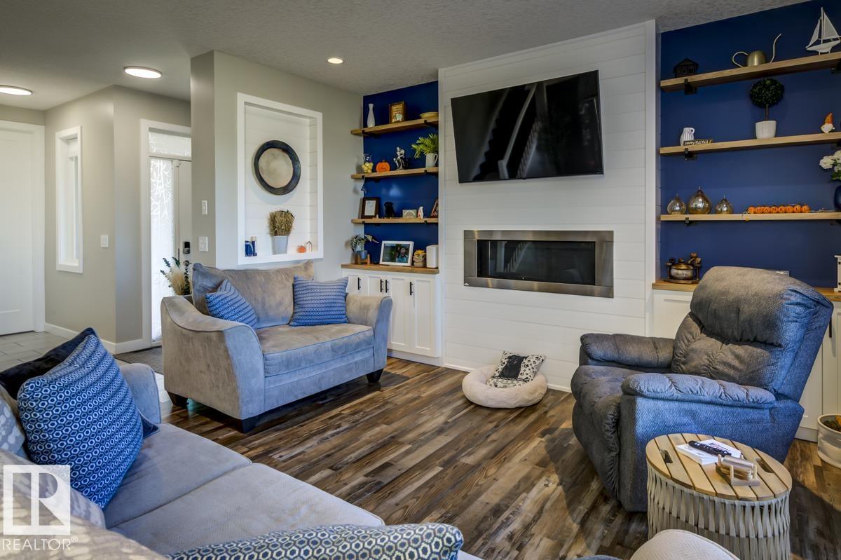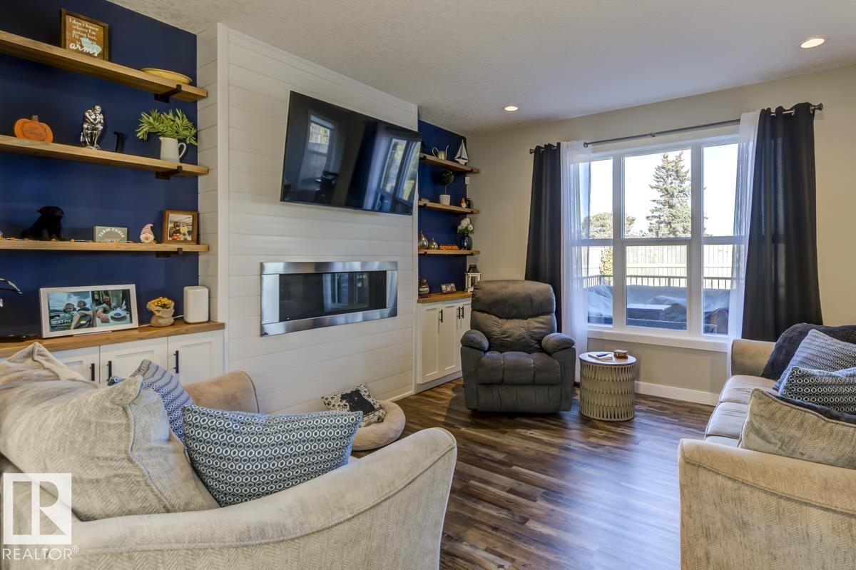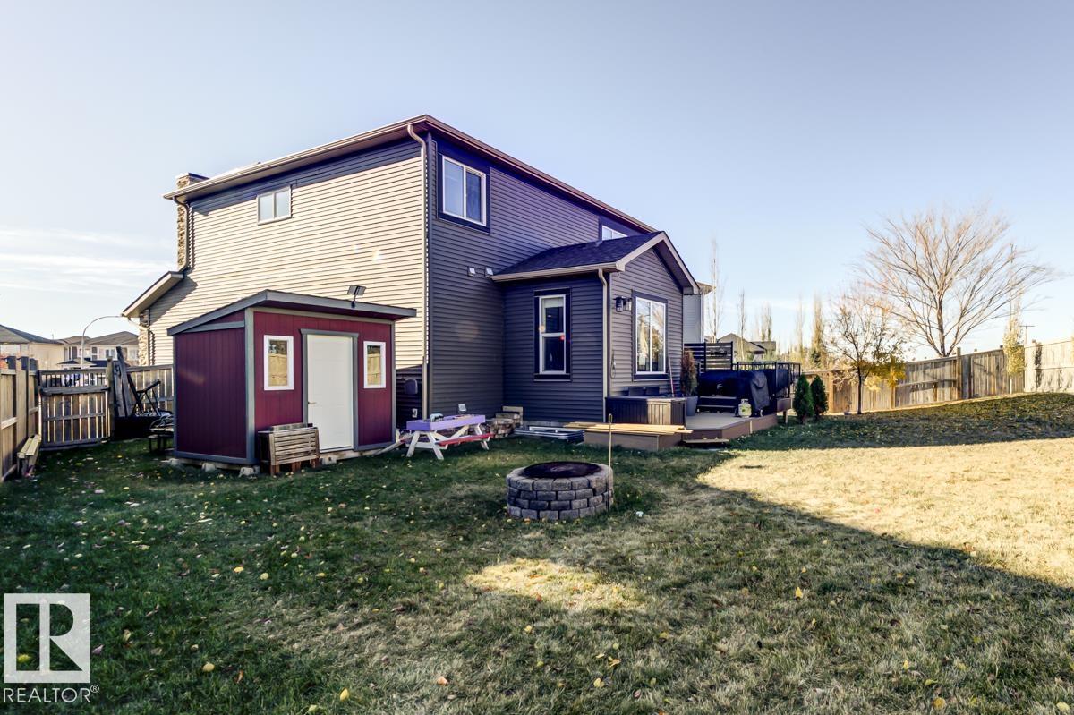 Discover the perfect blend of style and comfort in this stunning Colonial Estates home! With approx. 2,600 sq. ft. of living space, this 3+1 bed, 3.5 bath home was designed for modern family living. The open-concept main floor invites you in with a cozy gas fireplace, a chef-inspired kitchen with a large island and walk-in pantry, and bright dining space. Upstairs, relax in the primary suite with walk-in closet and 5 piece ensuite, plus the convenience of upstairs laundry. The fully finished basement adds even more living space with a family room, wet bar, and custom cedar ceiling. Step outside to a composite deck, large yard, and fire pit -- perfect for summer nights in Beaumont's beautiful Colonial Estates.