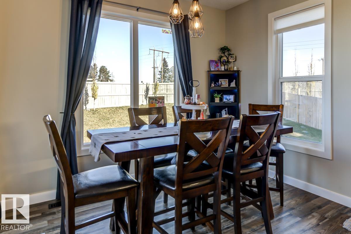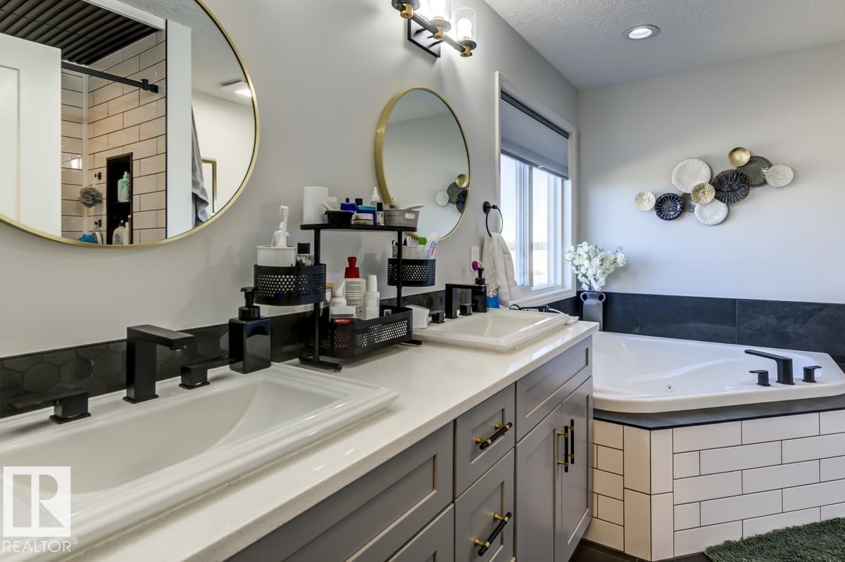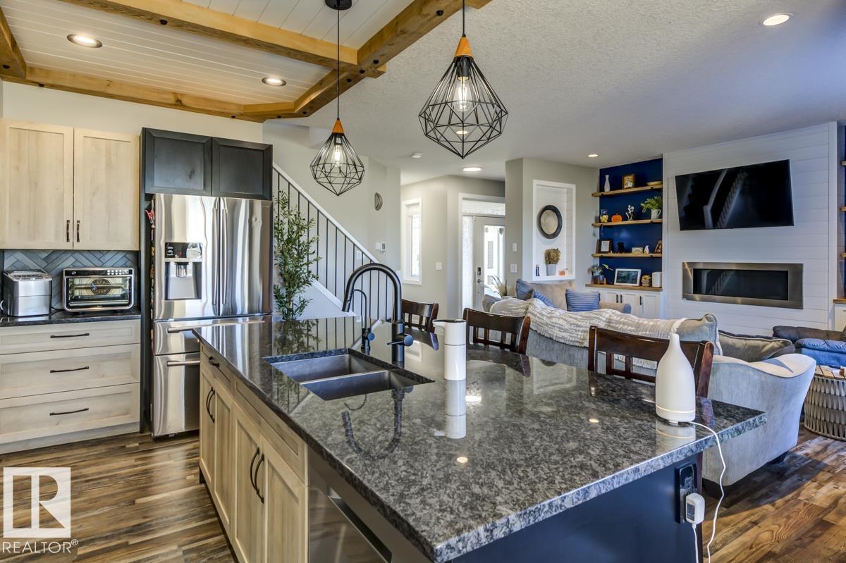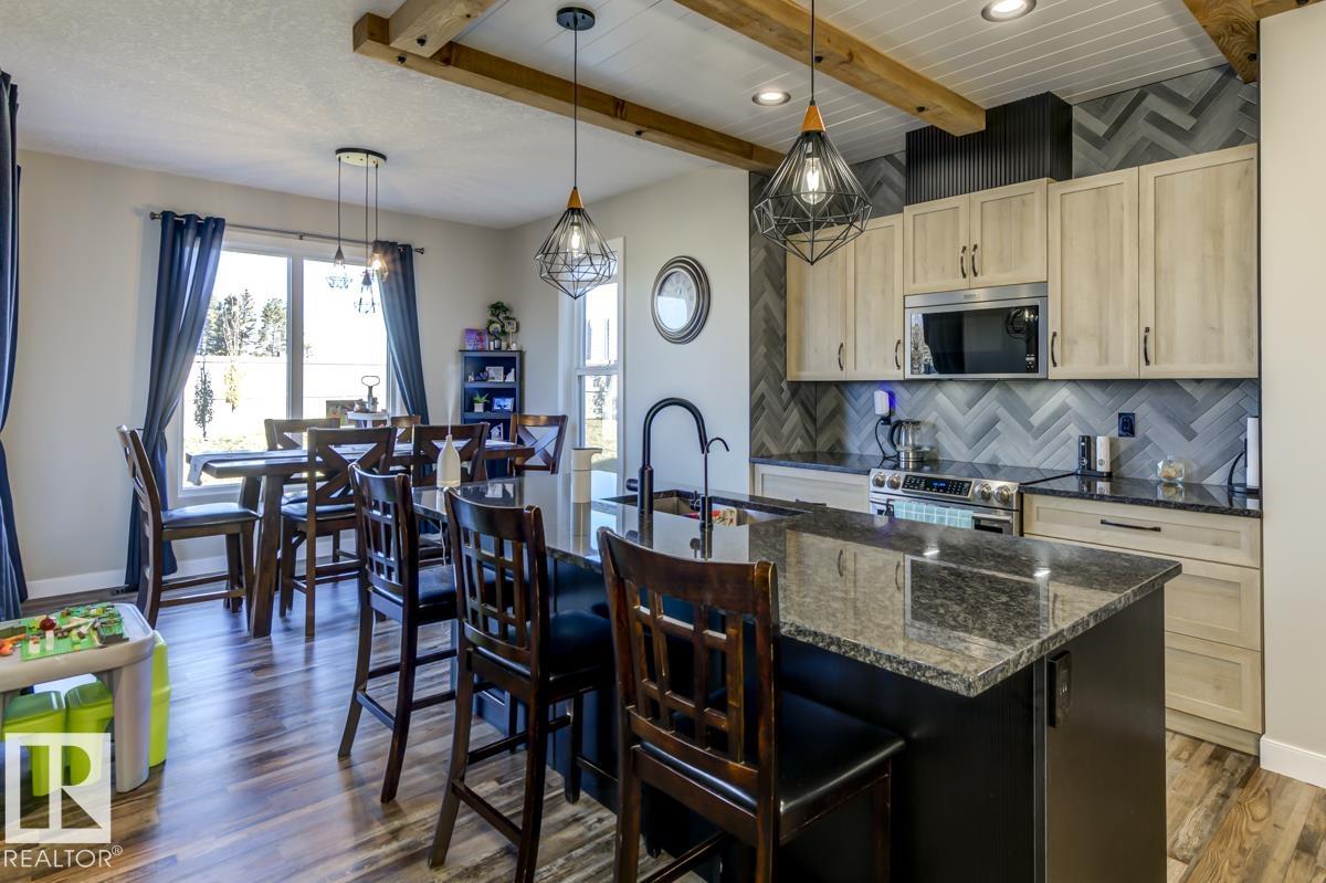 Discover the perfect blend of style and comfort in this stunning Colonial Estates home! With approx. 2,600 sq. ft. of living space, this 3+1 bed, 3.5 bath home was designed for modern family living. The open-concept main floor invites you in with a cozy gas fireplace, a chef-inspired kitchen with a large island and walk-in pantry, and bright dining space. Upstairs, relax in the primary suite with walk-in closet and 5 piece ensuite, plus the convenience of upstairs laundry. The fully finished basement adds even more living space with a family room, wet bar, and custom cedar ceiling. Step outside to a composite deck, large yard, and fire pit -- perfect for summer nights in Beaumont's beautiful Colonial Estates.