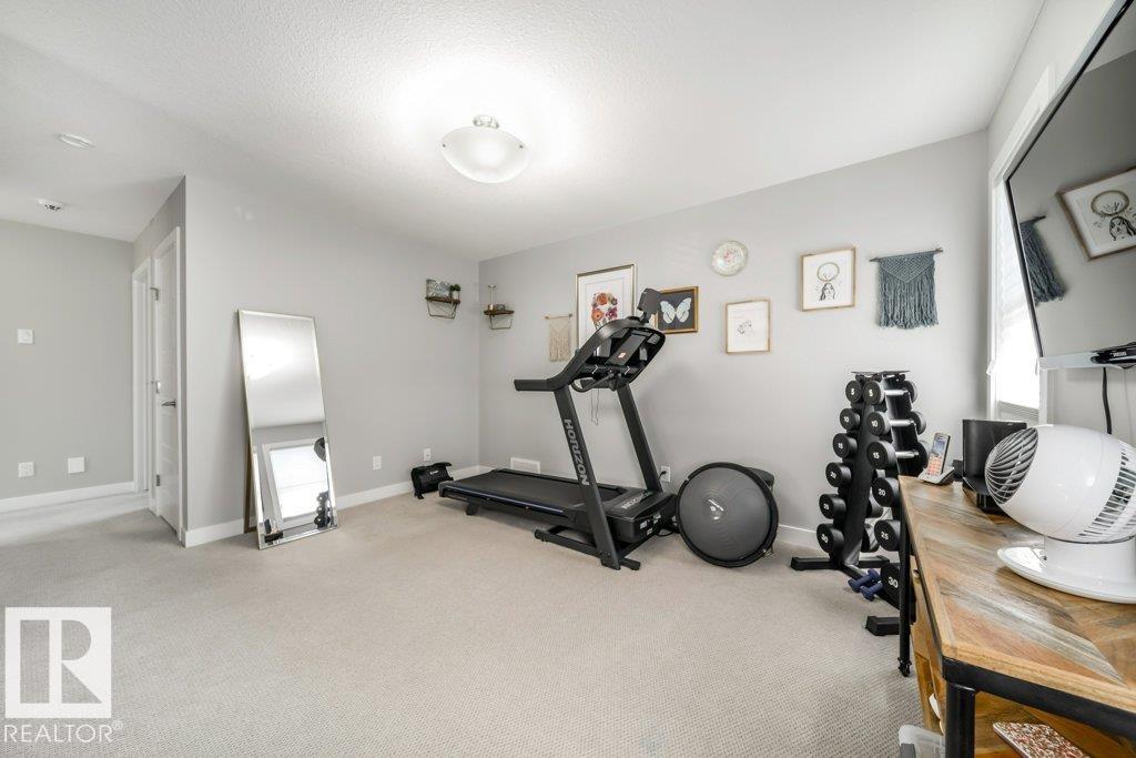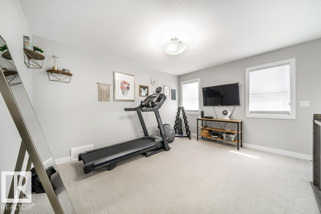 Welcome to Coloniale Estates, one of Beaumont's most sought-after communities, centered around a premier golf course and known for its quiet, upscale appeal. This immaculate 2-storey home offers over 2,700 sq ft of developed living space and shows like new--truly a rare find where the condition exceeds the photos. Every detail reflects exceptional pride of ownership, with spotless interiors, abundant natural light, and high-quality finishes throughout. Featuring 4 bedrooms, 3.5 baths + loft, hardwood and quartz countertops, a bright open layout, and a stunning kitchen with walk-in pantry. The spacious primary retreat includes a tray ceiling and a luxurious ensuite with double sinks, soaker tub, and custom tiled shower. Upstairs laundry adds convenience. The professionally finished basement offers a family room and bedroom with ensuite and barn door. Enjoy a full-width private deck, covered veranda, and landscaped yard on a quiet crescent just steps to the golf course.