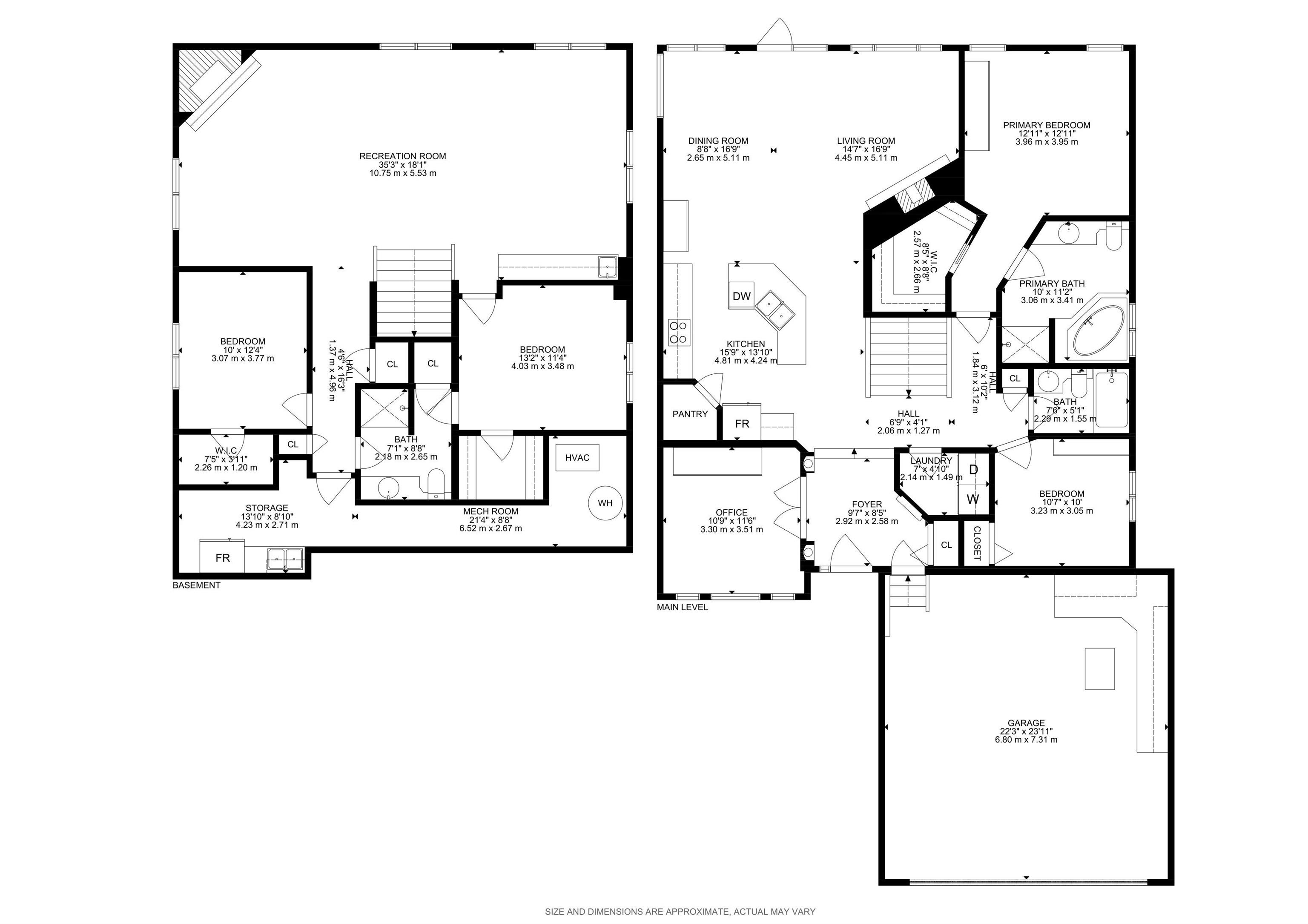 Welcome to this beautiful bungalow in the sought-after community of Coloniale Estates in Beaumont. Featuring 4 bedrooms and 3 full bathrooms, this home offers an inviting open-concept layout with vaulted ceilings and plenty of natural light. The spacious living room boasts a cozy fireplace, while the kitchen flows seamlessly into the dining and living areas--perfect for entertaining. Stay comfortable year-round with central air conditioning and enjoy outdoor living on the low-maintenance composite deck. The fully finished basement includes a large family room with a second fireplace, games area, wet bar, and two bedrooms with walk-in closets. A storage room with sink, refrigerator and shelving adds convenience. The oversized garage offers ample storage, a generous workbench, and an electric heater for year-round use. A perfect family home in a fantastic location!