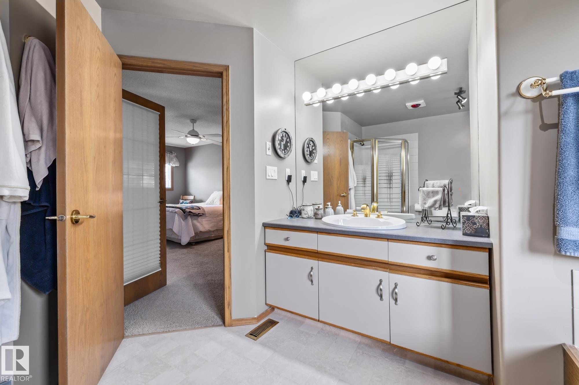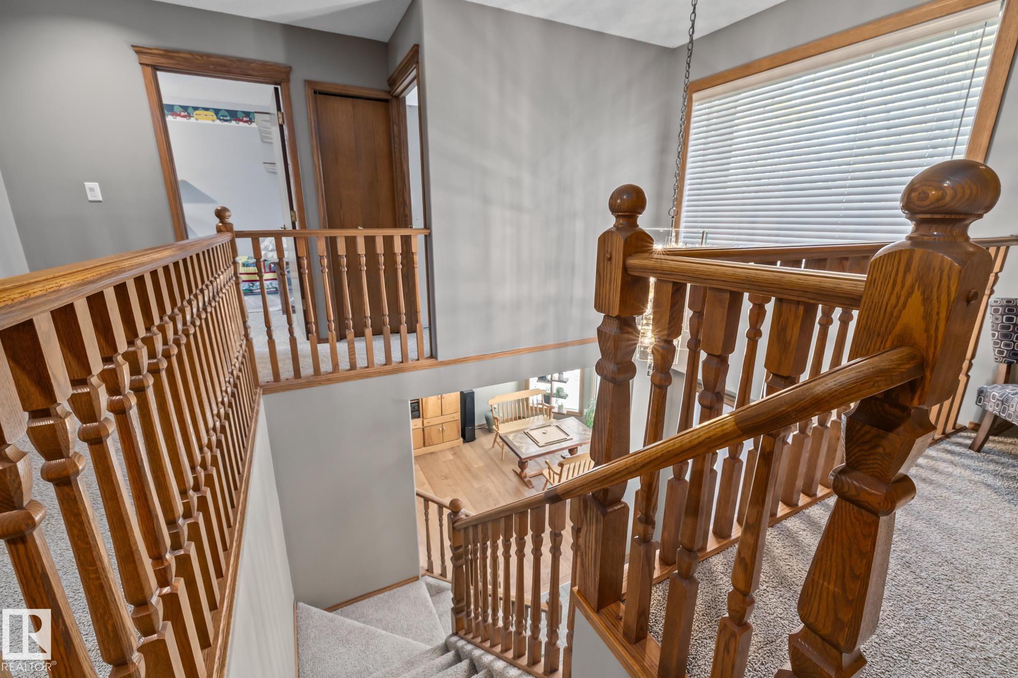 Welcome to your dream home in Heritage Lakes BACKING ONTO HARWOOD PARK! This immaculate AIR CONDITIONED two story residence boasts a classic brick exterior, exuding timeless elegance and charm.  Situated on a quiet crescent, this property offers an blend of privacy with direct access to beautiful parks & greenspaces right at your doorstep. EXPANSIVE backyard presents a serene outdoor space you'll absolutely LOVE! You'll be greeted with meticulously landscaped gardens, stunning curb appeal and a welcoming foyer that provides a glimpse of the thoughtful design that awaits. Heart of this home is the upgraded gourmet kitchen (new tile, countertops), lovely breakfast nook and family room overlooking your garden oasis.  Front formal living & dining room & main floor laundry completes the main floor. Upper level boasts tranquil primary suite with spa-like bathroom, two additional well-sized bedrooms and cute loft area. Lower level is fully finished with rumpus room/bedroom/bath & ample storage options.