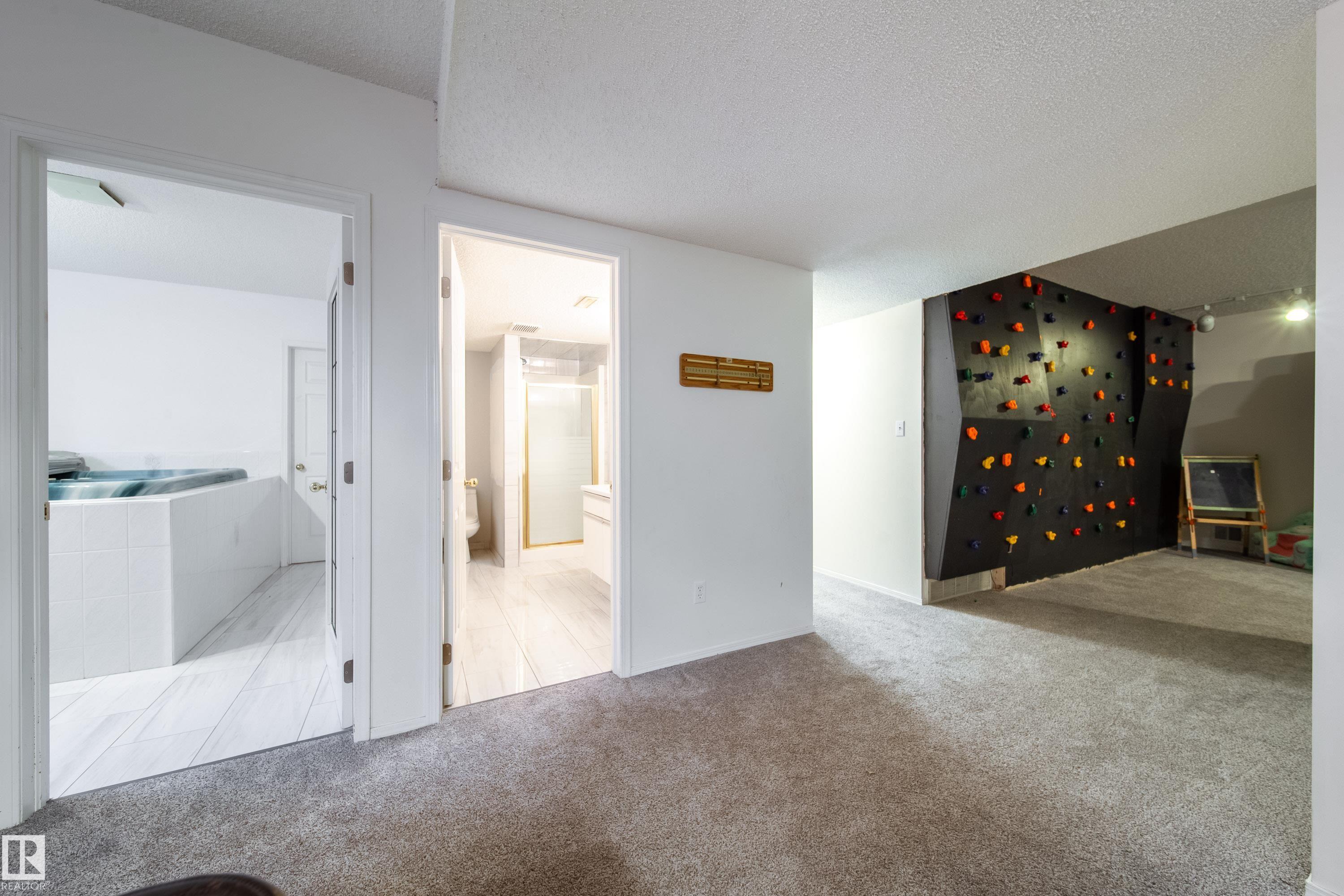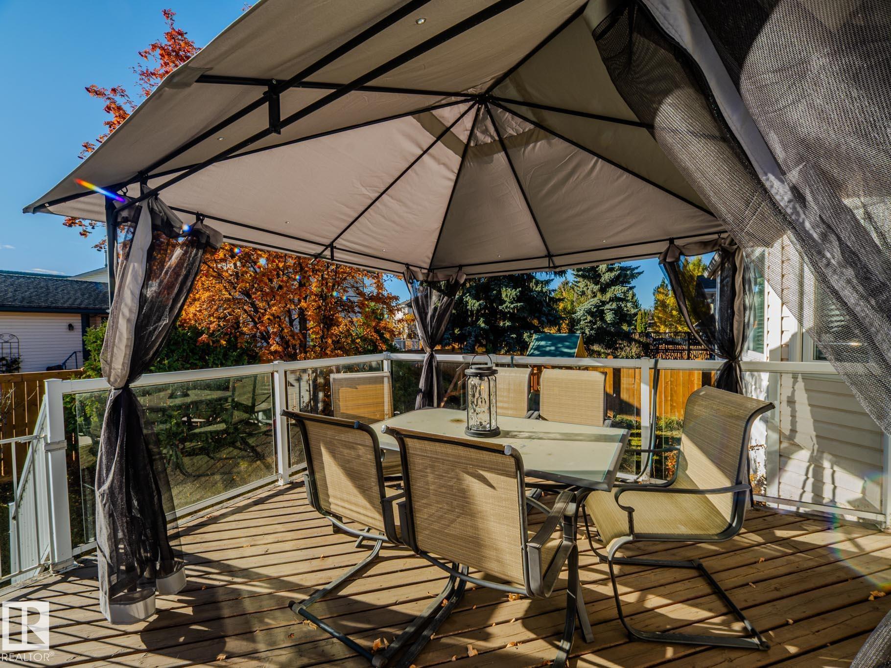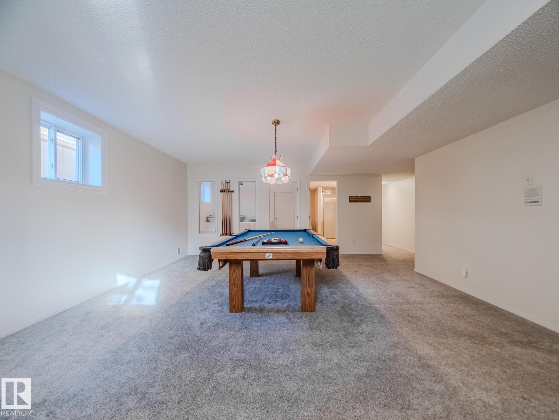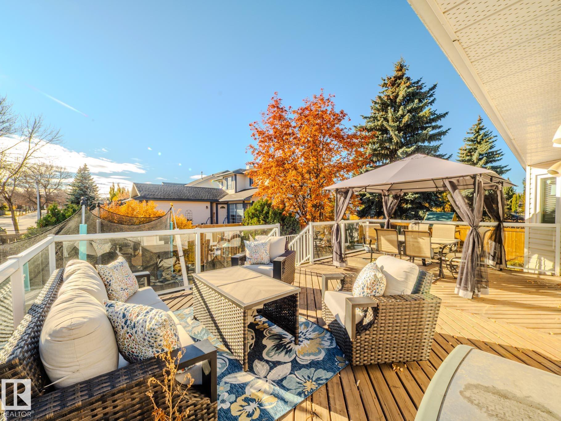 Welcome to this Expansive Bungalow in Heritage Lakes w just over 1900 sqft! 5 bedrooms, 3 full baths, 3 living areas and a rec room! Enjoy this Corner Lot w lake views from your south facing deck, just steps from year round walking trails. Front entry opens to a spacious sitting room & formal dining space. Bright & airy Kitchen w white cabinets, stainless steel appliances, center island & dinette space. The family room showcases a gas fireplace & access to the sunny south-facing deck, perfect for everyday living and entertaining! Primary suite retreat w built-in wardrobe cabinets & walk-in closet, double jetted tub, large vanity, private water closet w shower. 2 more spacious bedrooms, full bath, & convenient main floor laundry complete this level. Downstairs find the ultimate space for family fun w huge rec room (pool table included), climbing wall, spa like bathroom, 2 additional bedrooms and storage space! Over $75,000 in upgrades: New Fence, Windows & Doors, Hot Water Tank. Easy Access to the Henday!